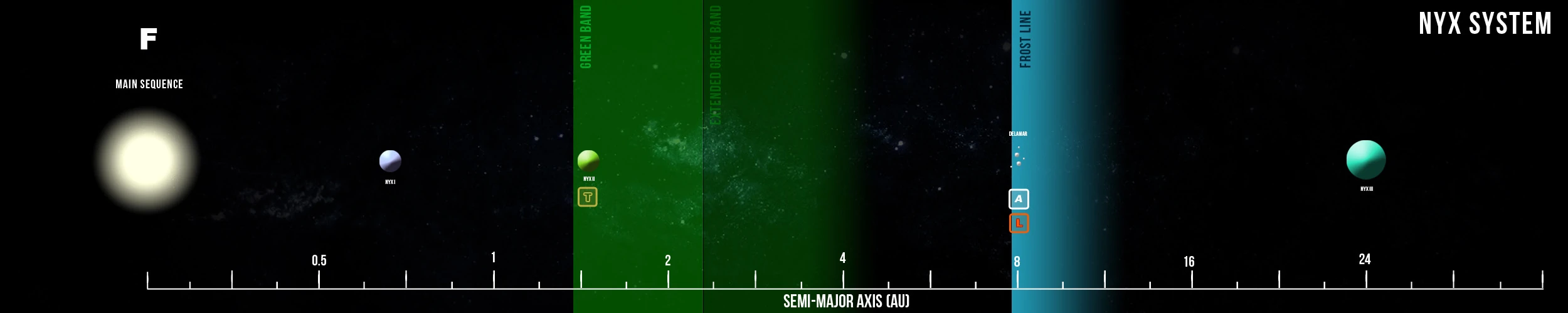 | Planètes | Nyx I • Nyx II • Delamar • Nyx III | ||